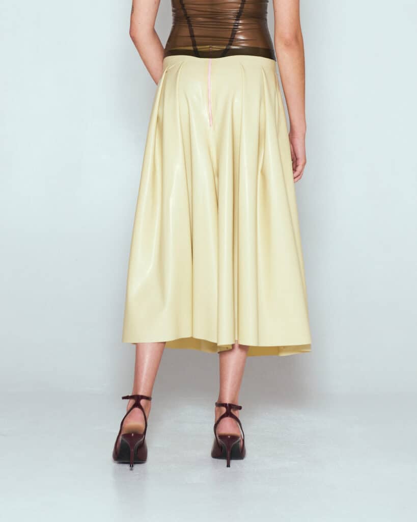 Culotte skirt designed with four structured pleats at the front and back to enhance volume and movement.