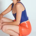 Keep away from metal (belt buckles, jewelry, hangers…) as this will stain and permanently damage the appearance of the latex.